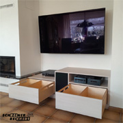 Offene Ablage für Receiver und Konsolen mit versteckter Kabeldurchführung zum Fernseher.