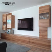 Wohnwand, wandhängend mit indirekter LED Beleuchtung der bestehenden Wandnische.