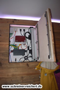 Echte Altholzdielen, hinterleuchtet mit RGB-LED, über App steuerbar.