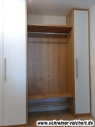 Echtholzfurnierte Garderobe in Eiche astig mit weissen Fronten.