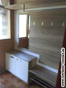 Sitzbank und Garderobenstange wurden so positioniert, dass der Sicherungskasten weiterhin zugänglich bleibt.