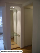 Spiegel in Wandnische mit Glasplatte als Ablagefläche.