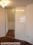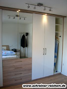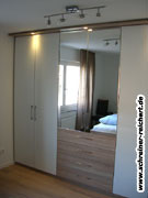 Viel Stauraum mit großer Spiegelfläche, passgenau in den Raum montiert.