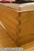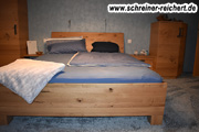 Doppelbett in Eiche astig mit verzinkter Eckverbindung.