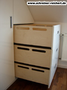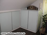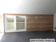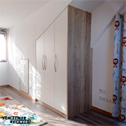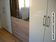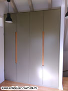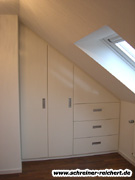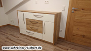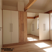 Kleiderschränke an Dachschräge angepasst und dazu passendes Sideboard.