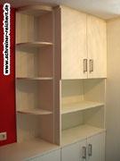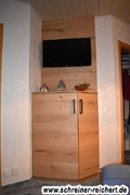 Schränke in Risseiche furniert mit z.T. abgeschrägten Fronten.