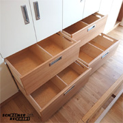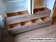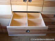 Innenliegende Schubkästen mit eingefrästen Griffmuscheln.