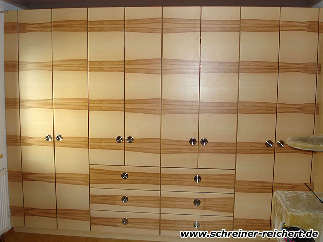 Schränke in Risseiche mit durchgehendem Furnierbild.
