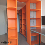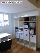 Beidseitig nutzbarer Schrank als Raumteiler ausgeführt.