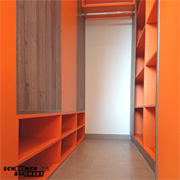 Geräumige Ankleide in KBS weiss und Ahorn Dekor.