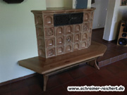 Zierfräsungen und eingefräste Griffschalen runden dieses klassische Vollholzmöbel ab.