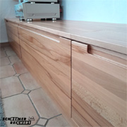 Schubkästen mit eingefrästen Griffmulden runden das Gesamtbild ab.