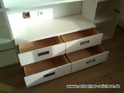 Hängendes Wandregal mit Schubkästen in Weisslack.
